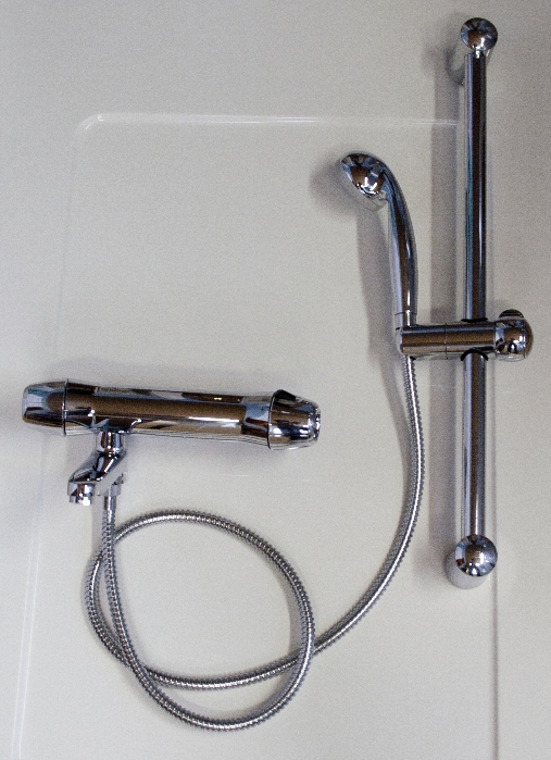 Die Thermostatarmatur bietet zusätzlich die Möglichkeit die Garnitur auch zum Duschen einzusetzen. Wenn Sie den Schwenkeinlauf unter die Armatur drehen, fließt das Wasser nur über die nun offene seitliche Brause. Bewegen Sie den Schwenkeinlauf in seine Ursprungsposition ist die Brause sofort geschlossen und Sie können wieder Wasser in die Wanne einlaufen lassen. Unsere Kunden schätzen bei diesem Zubehör besonders das spielend leichte Umschalten in die Duschfunktion ohne Kraftaufwand. Die Thermostatarmatur können Sie optional gegen Aufpreis zum gewünschten Badewannenmodell erhalten.